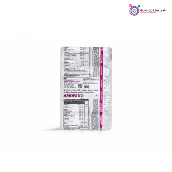 AMORINO is a multi-ingredient nutraceutical designed to address modern men’s wellness needs. It combines essential amino acids, powerful antioxidants like Astaxanthin, and traditional herbal extracts to improve overall stamina and reproductive performance. The inclusion of Nano Curcumin ensures superior absorption, making it an effective solution for maintaining peak physical and reproductive health.